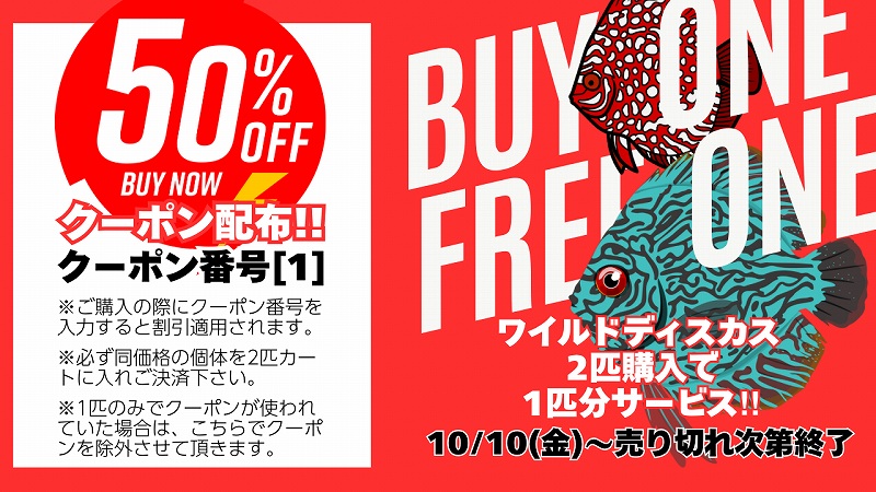 ワイルドディスカス専門店ペットバルーンEXではBUY ONE FREE ONE企画がスタート!!