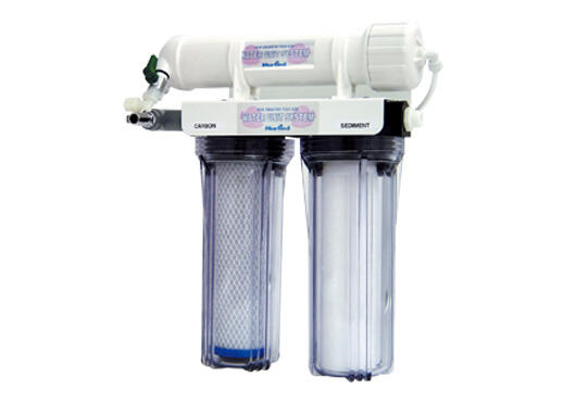 メインとなるR.O.水は、サンゴ・海水魚水槽の人工海水を作るベースウォーターとしてだけでなく、水質に極めて敏感なディスカスやシュリンプのブリーディングウォーターとして、極力コケを発生させず、繊細な美しさを楽しむ水草水槽での利用など、日産560リットルのR.O.水を生成し、1台で全てのアクアリウムに対応するエキスパートモデルです。