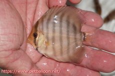 知る人ぞ知る籠谷氏作出のワイルドクロス個体です。過去、ワイルドグリーン、ワイルドブルーなどワイルドディスカスの各種のブリーディングに精通し、カメタブルーダイヤまでブリードしていた氏のブリードした個体で、今回はワイルド アッパーテフェロイヤルグリーン♂×ラーゴパラコニブラッドレッドF2のF1個体です。あのWWFFで作出されたWR25タンジェリンドリームを彷彿させる組み合わせのディスカスとなっており、スポット系グリーンディスカスとソリッドレッドディスカスの組み合わせは多種多様な表現を持つ個体へと成長することでしょう。※写真3枚目は両親、4枚目はオス親のアッパーテフェロイヤルグルーン、5枚目はメス親のラーゴパラコニブラッドレッドF2の写真です。
