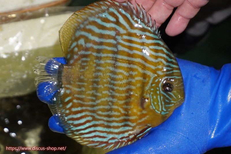 イエローベースが美しいソリッド、ソリッドセンターバー、ロイヤルブルーが混生するウラリアチャンネルに絡む有名産地。 きめ細かな鱗からの上品な発色、ロイヤル個体の明瞭なラインパターン、千差万別の個体差はワイルドディスカスの魅力を存分に持ち合わせた個体といえます。