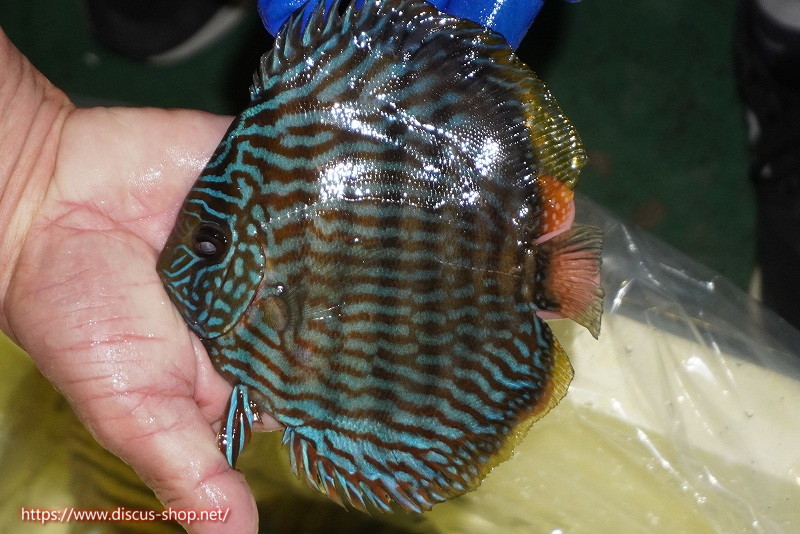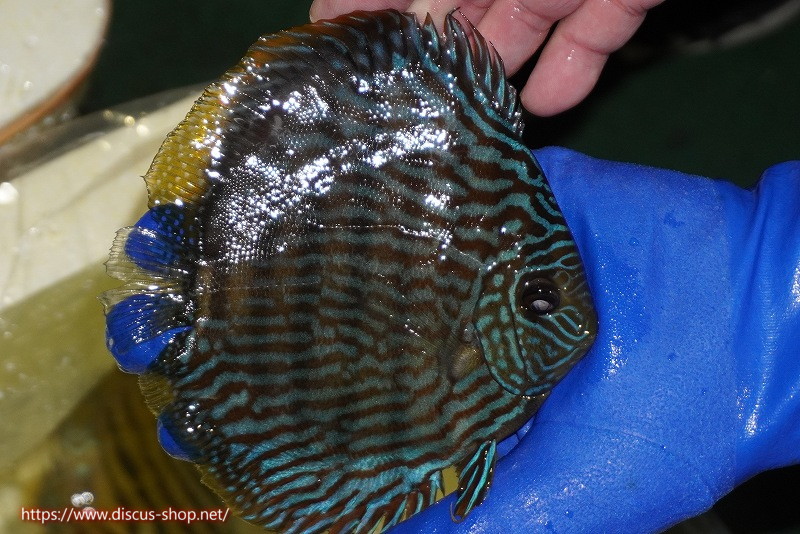 イエローベースが美しいソリッド、ソリッドセンターバー、ロイヤルブルーが混生するウラリアチャンネルに絡む有名産地。 きめ細かな鱗からの上品な発色、ロイヤル個体の明瞭なラインパターン、千差万別の個体差はワイルドディスカスの魅力を存分に持ち合わせた個体といえます。
