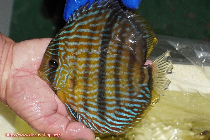 イエローベースが美しいソリッド、ソリッドセンターバー、ロイヤルブルーが混生するウラリアチャンネルに絡む有名産地。 きめ細かな鱗からの上品な発色、ロイヤル個体の明瞭なラインパターン、千差万別の個体差はワイルドディスカスの魅力を存分に持ち合わせた個体といえます。