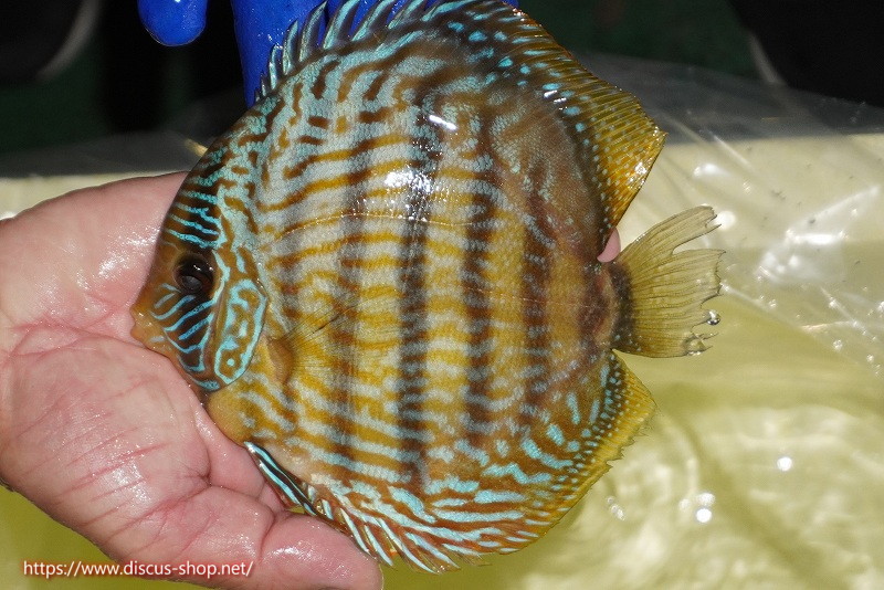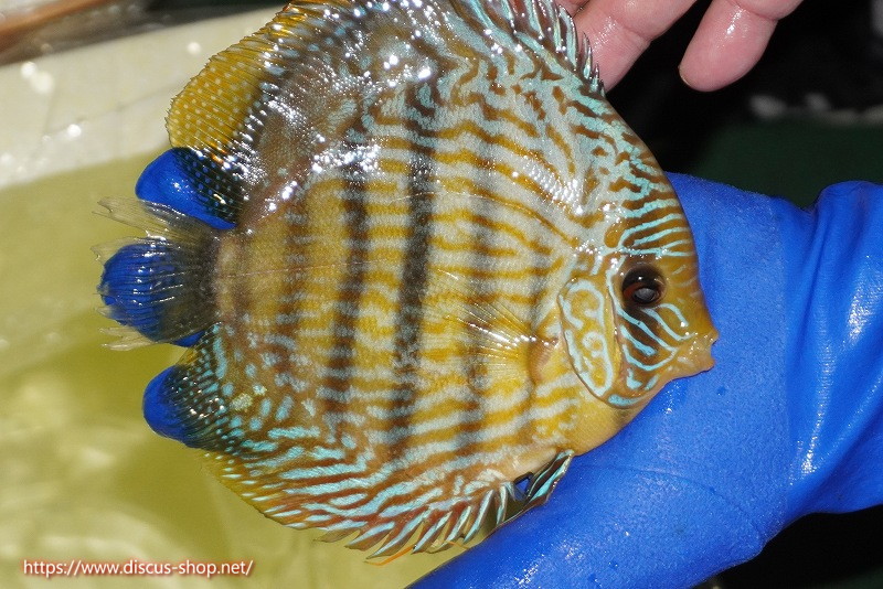 イエローベースが美しいソリッド、ソリッドセンターバー、ロイヤルブルーが混生するウラリアチャンネルに絡む有名産地。 きめ細かな鱗からの上品な発色、ロイヤル個体の明瞭なラインパターン、千差万別の個体差はワイルドディスカスの魅力を存分に持ち合わせた個体といえます。