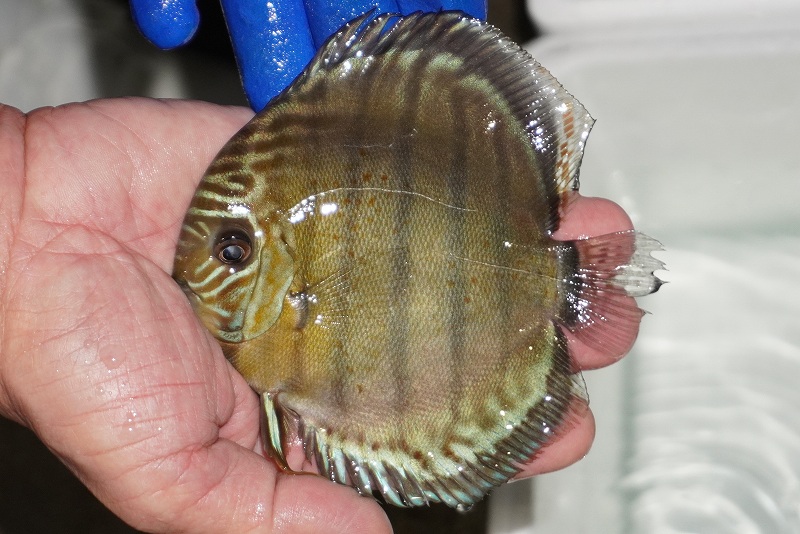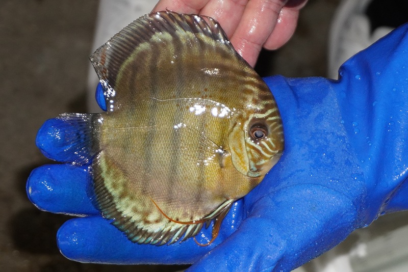 グリーンディスカスらしからぬ美しいラウンドボディ、きめ細やかな鱗、上品なパウダーグリーンが特徴的なアマゾン川最上流域ペルーで採集されるグリーンディスカス。