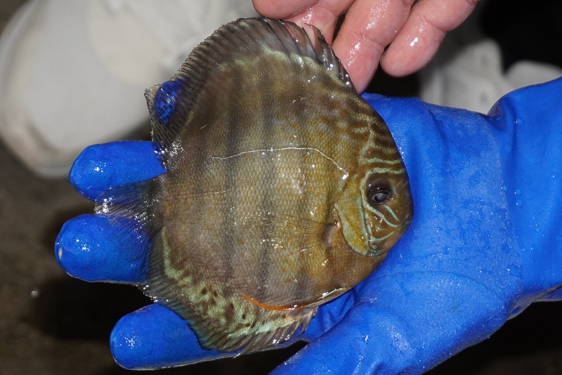 グリーンディスカスらしからぬ美しいラウンドボディ、きめ細やかな鱗、上品なパウダーグリーンが特徴的なアマゾン川最上流域ペルーで採集されるグリーンディスカス。