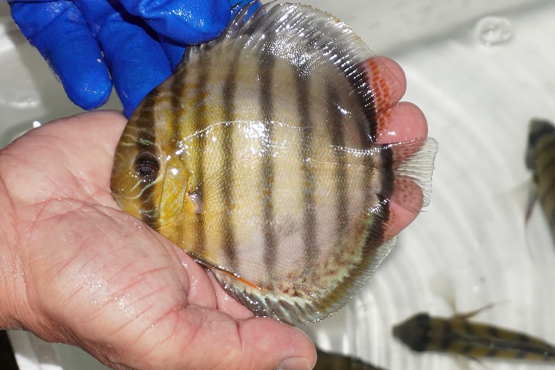 グリーンディスカスらしからぬ美しいラウンドボディ、きめ細やかな鱗、上品なパウダーグリーンが特徴的なアマゾン川最上流域ペルーで採集されるグリーンディスカス。