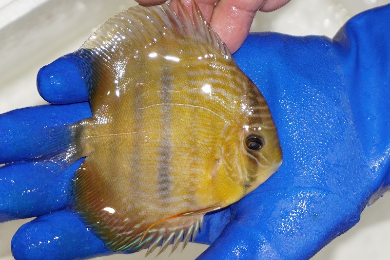 【ワイルドディスカス】【通販】ウラリアソリッドイエローセンターバー ヤングスター(金目)【個体販売】9-11cm(生体)ウラリア産