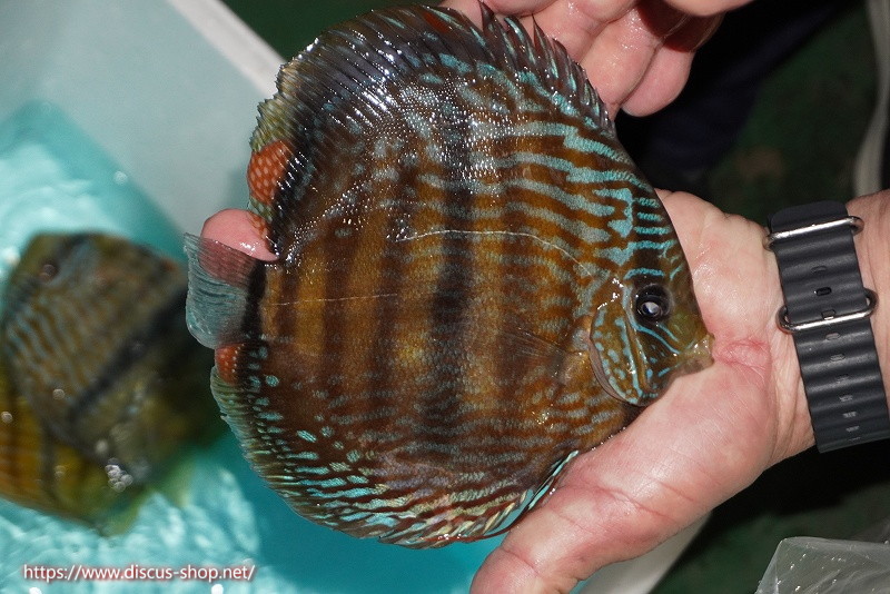 【ワイルドディスカス】【通販】【究極のセンターバー 】ラーゴクミナ ロイヤル センターバー(金目)【個体販売】17cm(生体)クミナ産