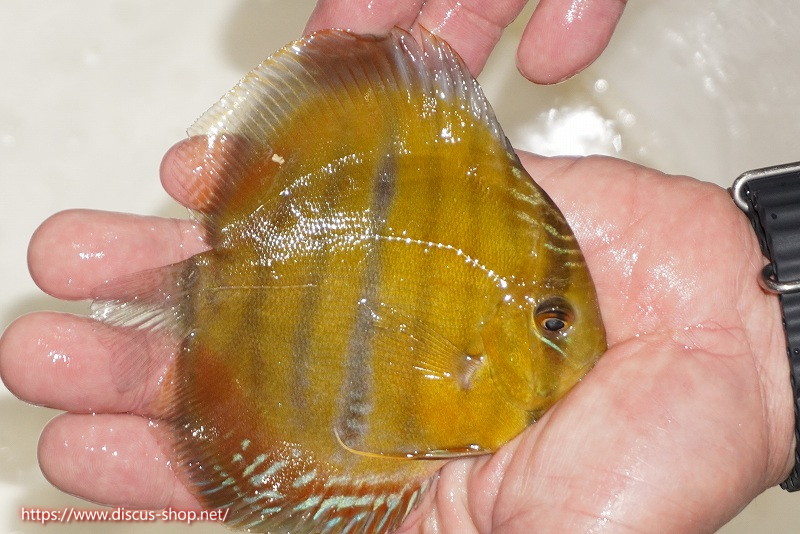 【ウィンターセール対象個体】【ワイルドディスカス】【通販】ウラリアソリッドイエローセンターバー ヤングスター(オレンジ目ー金目)【個体販売】9-11cm(生体)ウラリア産 [ab99-51226260]