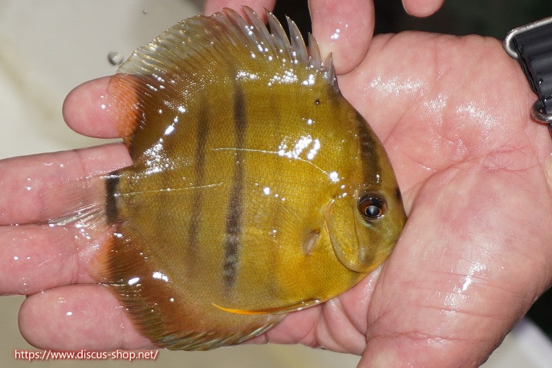 【ウィンターセール対象個体】【ワイルドディスカス】【通販】ウラリアソリッドイエローセンターバー ヤングスター(オレンジ目ー金目)【個体販売】9-11cm(生体)ウラリア産 [ab99-51226300]