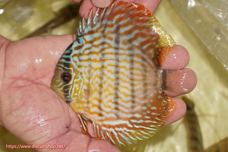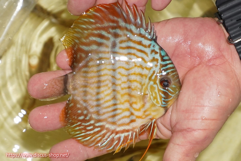イエローベースが美しいソリッド、ソリッドセンターバー、ロイヤルブルーが混生するウラリアチャンネルに絡む有名産地。 きめ細かな鱗からの上品な発色、ロイヤル個体の明瞭なラインパターン、千差万別の個体差はワイルドディスカスの魅力を存分に持ち合わせた個体といえます。