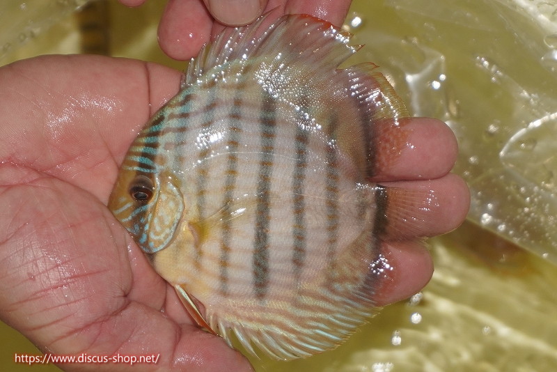 イエローベースが美しいソリッド、ソリッドセンターバー、ロイヤルブルーが混生するウラリアチャンネルに絡む有名産地。 きめ細かな鱗からの上品な発色、ロイヤル個体の明瞭なラインパターン、千差万別の個体差はワイルドディスカスの魅力を存分に持ち合わせた個体といえます。