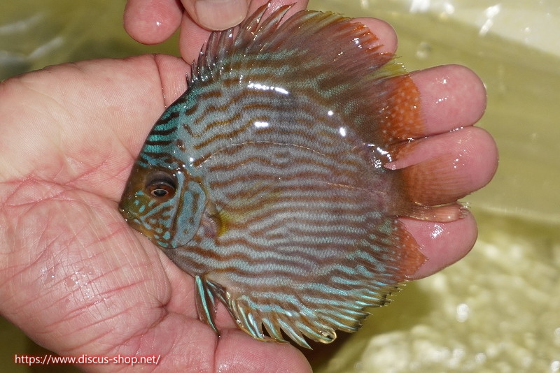 ネグロ産のヘッケルディスカス。ワイルドディスカスらしからぬ際立った青みを持ちベースカラーのえんじ色と相まって非常に美しい発色を見せます。名のごとくフェイス部分の青みは他の産地のヘッケルディスカスとは一味違った表現を持ちます。