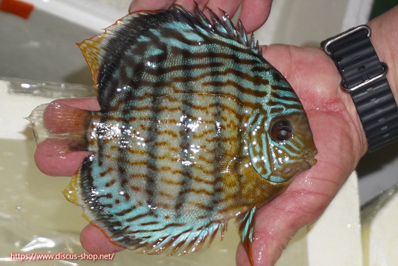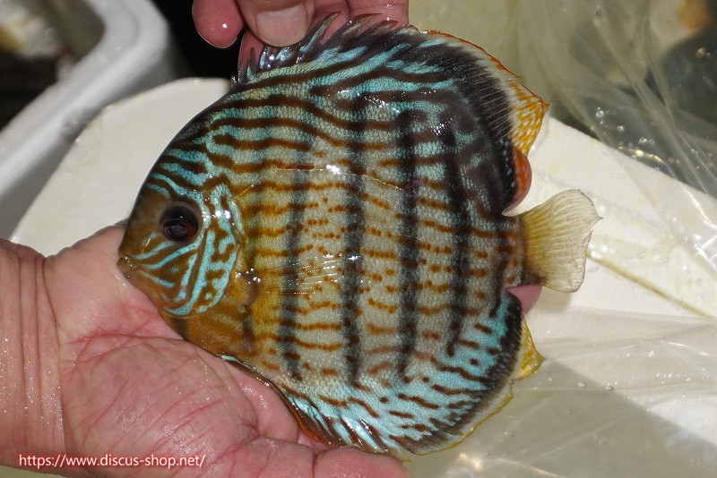 グリーンディスカスの中でも最もバリエーションが豊富でラージスポットタイプ、スポットラインタイプをはじめ、ロイヤルラインタイプなどの極上個体。またベースカラーの黄色、ホリゾンタルラインの青み、スポットの赤と最もカラフルな種となります。仕上がれば改良品種顔負けのど派手なパターンを持つ魅力的な産地の個体となります。