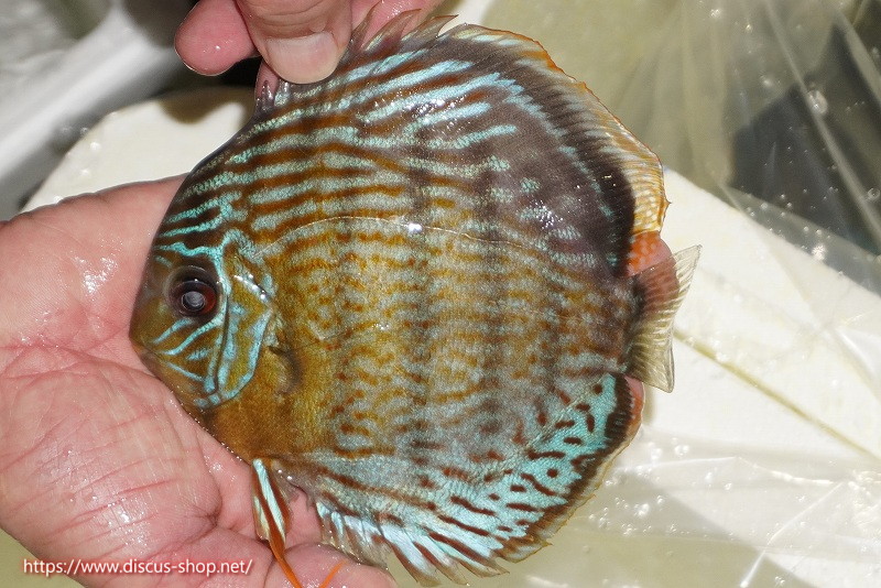 グリーンディスカスの中でも最もバリエーションが豊富でラージスポットタイプ、スポットラインタイプをはじめ、ロイヤルラインタイプなどの極上個体。またベースカラーの黄色、ホリゾンタルラインの青み、スポットの赤と最もカラフルな種となります。仕上がれば改良品種顔負けのど派手なパターンを持つ魅力的な産地の個体となります。
