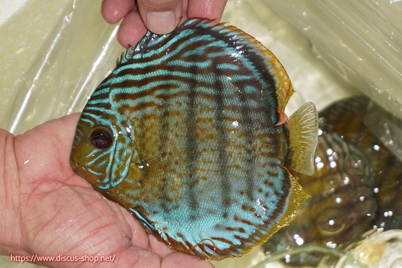 グリーンディスカスの中でも最もバリエーションが豊富でラージスポットタイプ、スポットラインタイプをはじめ、ロイヤルラインタイプなどの極上個体。またベースカラーの黄色、ホリゾンタルラインの青み、スポットの赤と最もカラフルな種となります。仕上がれば改良品種顔負けのど派手なパターンを持つ魅力的な産地の個体となります。