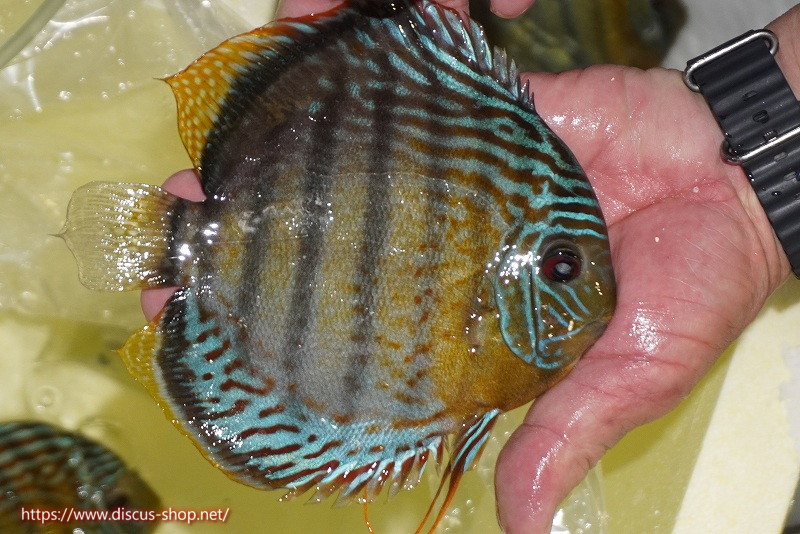 グリーンディスカスの中でも最もバリエーションが豊富でラージスポットタイプ、スポットラインタイプをはじめ、ロイヤルラインタイプなどの極上個体。またベースカラーの黄色、ホリゾンタルラインの青み、スポットの赤と最もカラフルな種となります。仕上がれば改良品種顔負けのど派手なパターンを持つ魅力的な産地の個体となります。