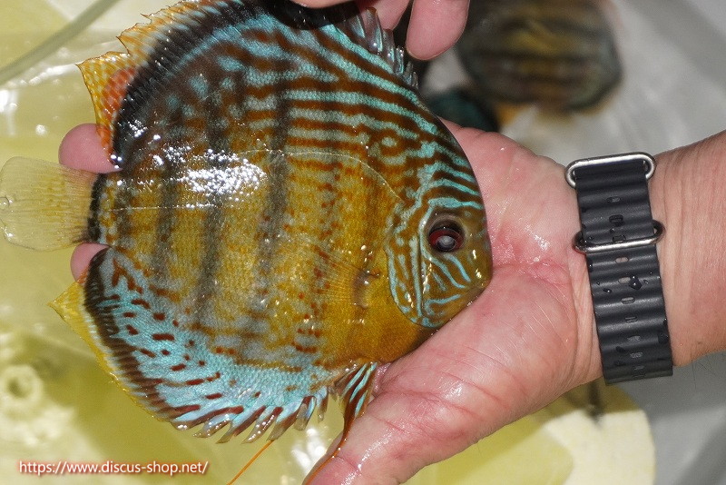 グリーンディスカスの中でも最もバリエーションが豊富でラージスポットタイプ、スポットラインタイプをはじめ、ロイヤルラインタイプなどの極上個体。またベースカラーの黄色、ホリゾンタルラインの青み、スポットの赤と最もカラフルな種となります。仕上がれば改良品種顔負けのど派手なパターンを持つ魅力的な産地の個体となります。
