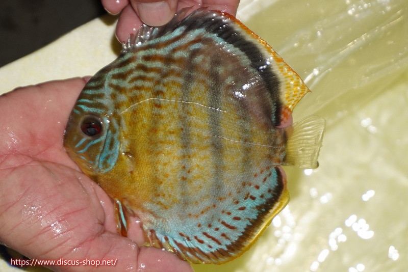 グリーンディスカスの中でも最もバリエーションが豊富でラージスポットタイプ、スポットラインタイプをはじめ、ロイヤルラインタイプなどの極上個体。またベースカラーの黄色、ホリゾンタルラインの青み、スポットの赤と最もカラフルな種となります。仕上がれば改良品種顔負けのど派手なパターンを持つ魅力的な産地の個体となります。