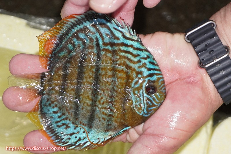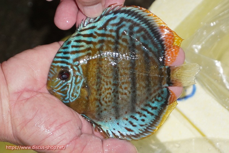 グリーンディスカスの中でも最もバリエーションが豊富でラージスポットタイプ、スポットラインタイプをはじめ、ロイヤルラインタイプなどの極上個体。またベースカラーの黄色、ホリゾンタルラインの青み、スポットの赤と最もカラフルな種となります。仕上がれば改良品種顔負けのど派手なパターンを持つ魅力的な産地の個体となります。