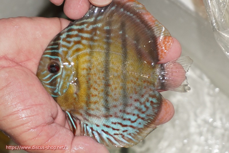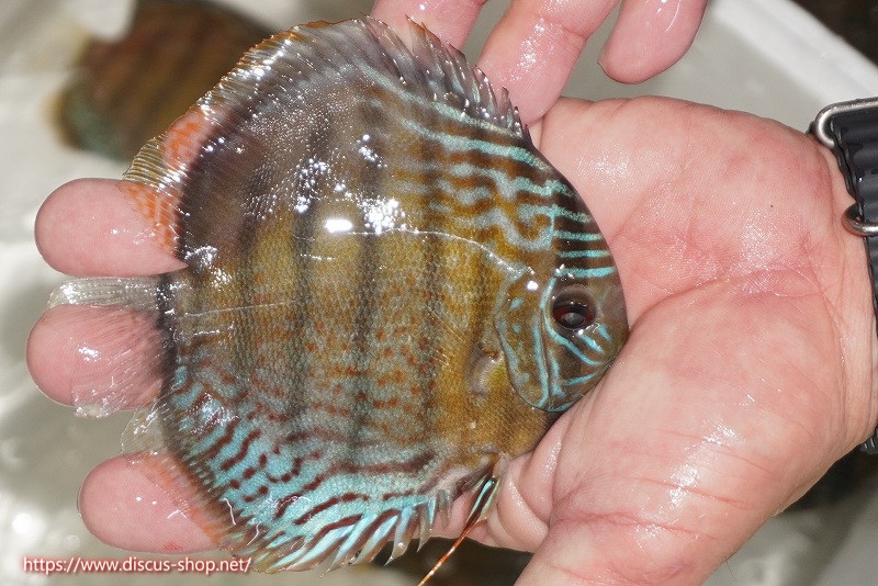 グリーンディスカスの中でも最もバリエーションが豊富でラージスポットタイプ、スポットラインタイプをはじめ、ロイヤルラインタイプなどの極上個体。またベースカラーの黄色、ホリゾンタルラインの青み、スポットの赤と最もカラフルな種となります。仕上がれば改良品種顔負けのど派手なパターンを持つ魅力的な産地の個体となります。