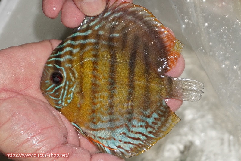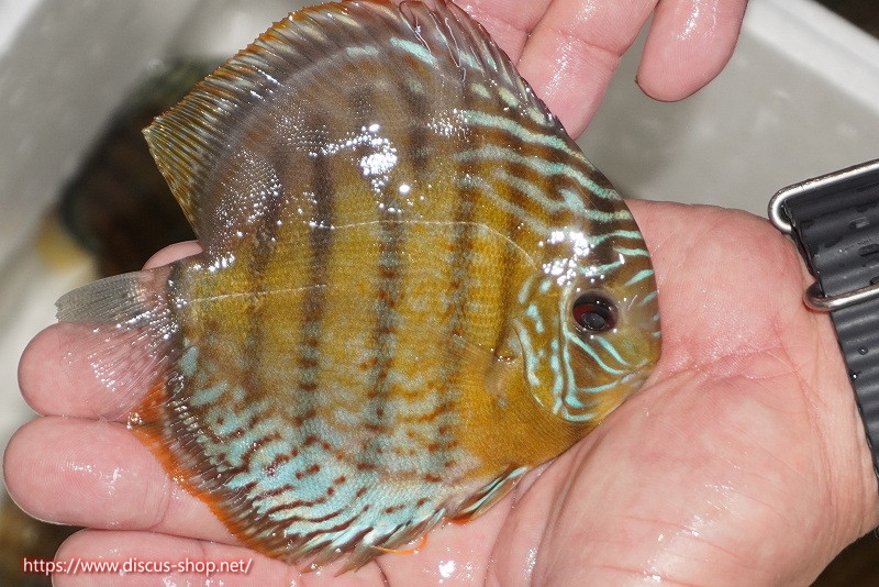 グリーンディスカスの中でも最もバリエーションが豊富でラージスポットタイプ、スポットラインタイプをはじめ、ロイヤルラインタイプなどの極上個体。またベースカラーの黄色、ホリゾンタルラインの青み、スポットの赤と最もカラフルな種となります。仕上がれば改良品種顔負けのど派手なパターンを持つ魅力的な産地の個体となります。