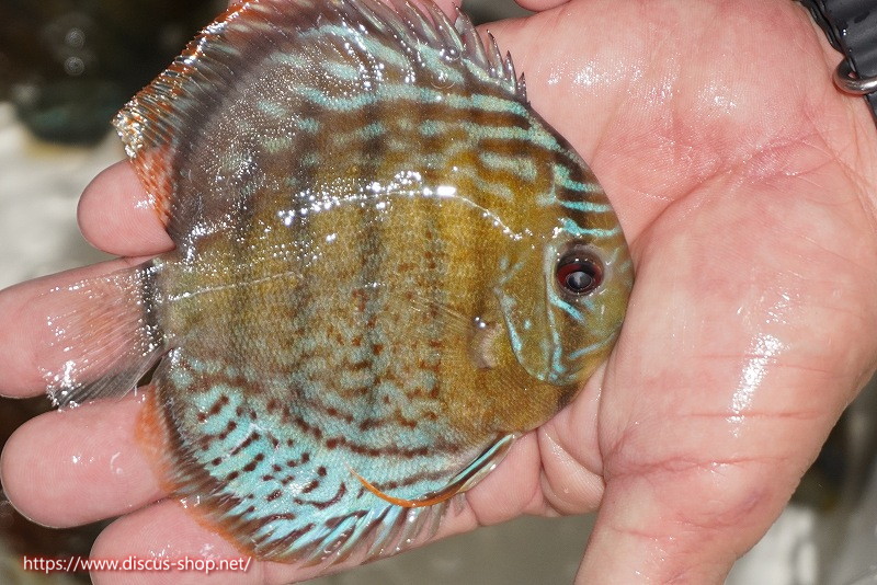 グリーンディスカスの中でも最もバリエーションが豊富でラージスポットタイプ、スポットラインタイプをはじめ、ロイヤルラインタイプなどの極上個体。またベースカラーの黄色、ホリゾンタルラインの青み、スポットの赤と最もカラフルな種となります。仕上がれば改良品種顔負けのど派手なパターンを持つ魅力的な産地の個体となります。