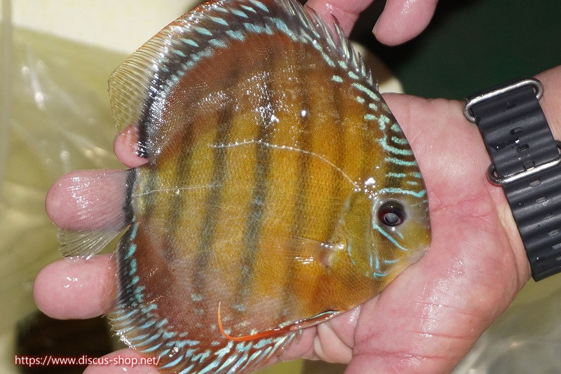 美しいラウンドフォルム、17センチを優に超える体躯でブルーディスカスの常識を覆した産地。下流域にはラインパターン、ソリッドが混生し、上流域には目を見張る様な青を発色するヘッケルが生息する。