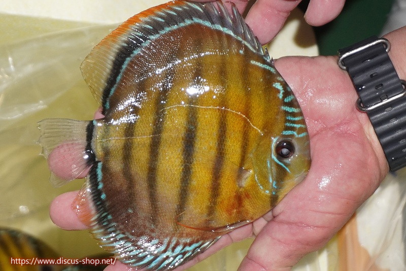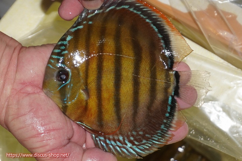 美しいラウンドフォルム、17センチを優に超える体躯でブルーディスカスの常識を覆した産地。下流域にはラインパターン、ソリッドが混生し、上流域には目を見張る様な青を発色するヘッケルが生息する。