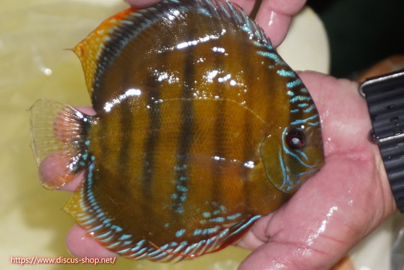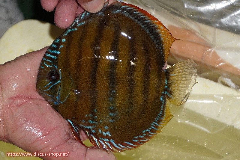 美しいラウンドフォルム、17センチを優に超える体躯でブルーディスカスの常識を覆した産地。下流域にはラインパターン、ソリッドが混生し、上流域には目を見張る様な青を発色するヘッケルが生息する。