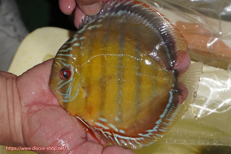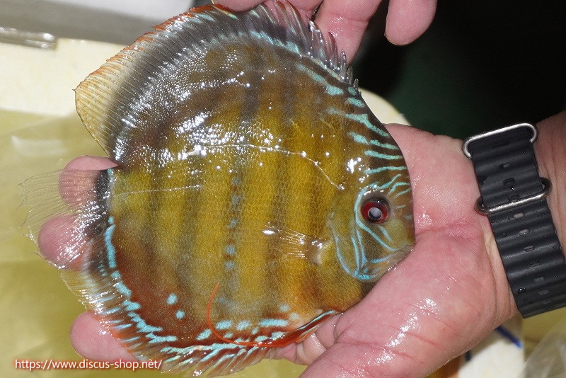 美しいラウンドフォルム、17センチを優に超える体躯でブルーディスカスの常識を覆した産地。下流域にはラインパターン、ソリッドが混生し、上流域には目を見張る様な青を発色するヘッケルが生息する。