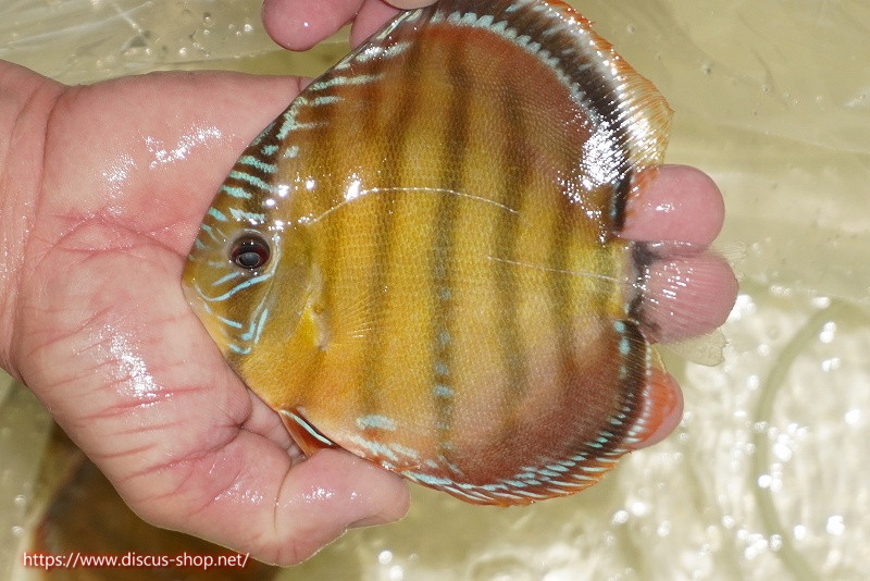 美しいラウンドフォルム、17センチを優に超える体躯でブルーディスカスの常識を覆した産地。下流域にはラインパターン、ソリッドが混生し、上流域には目を見張る様な青を発色するヘッケルが生息する。