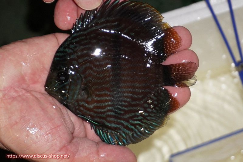 ネグロ産のヘッケルディスカス。ワイルドディスカスらしからぬ際立った青みを持ちベースカラーのえんじ色と相まって非常に美しい発色を見せます。名のごとくフェイス部分の青みは他の産地のヘッケルディスカスとは一味違った表現を持ちます。
