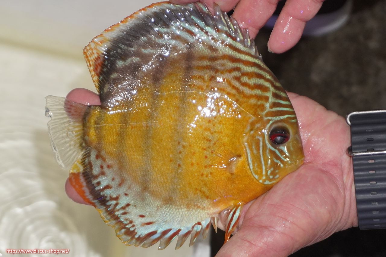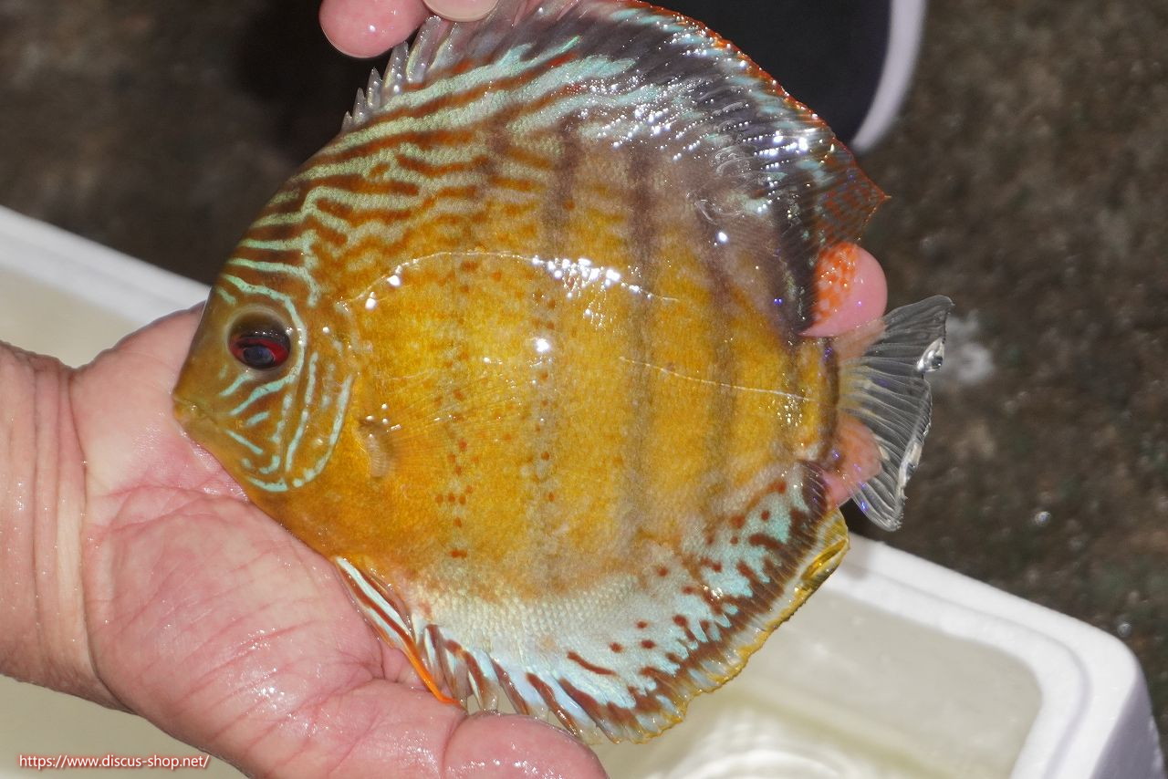 グリーンディスカスの中でも最もバリエーションが豊富でラージスポットタイプ、スポットラインタイプをはじめ、ロイヤルラインタイプなどの極上個体。またベースカラーの黄色、ホリゾンタルラインの青み、スポットの赤と最もカラフルな種となります。仕上がれば改良品種顔負けのど派手なパターンを持つ魅力的な産地の個体となります。