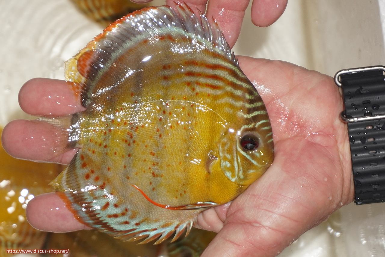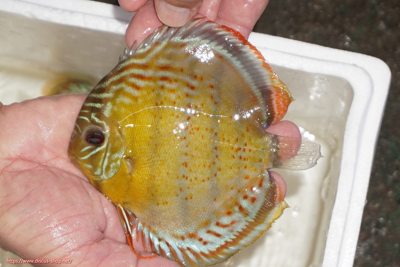 グリーンディスカスの中でも最もバリエーションが豊富でラージスポットタイプ、スポットラインタイプをはじめ、ロイヤルラインタイプなどの極上個体。またベースカラーの黄色、ホリゾンタルラインの青み、スポットの赤と最もカラフルな種となります。仕上がれば改良品種顔負けのど派手なパターンを持つ魅力的な産地の個体となります。