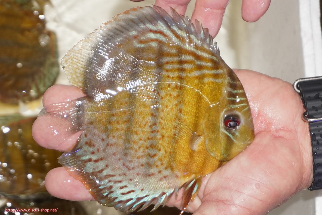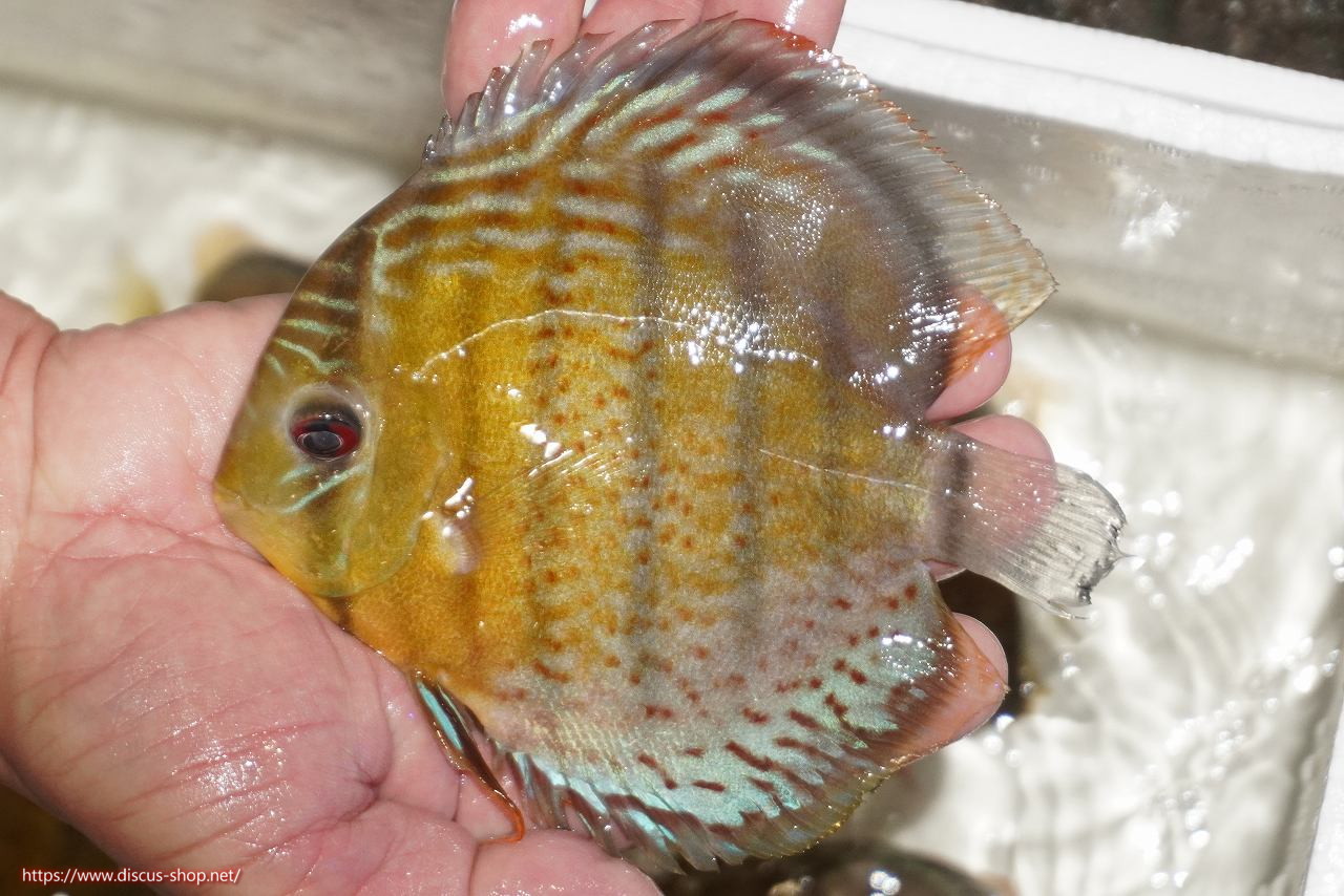 グリーンディスカスの中でも最もバリエーションが豊富でラージスポットタイプ、スポットラインタイプをはじめ、ロイヤルラインタイプなどの極上個体。またベースカラーの黄色、ホリゾンタルラインの青み、スポットの赤と最もカラフルな種となります。仕上がれば改良品種顔負けのど派手なパターンを持つ魅力的な産地の個体となります。