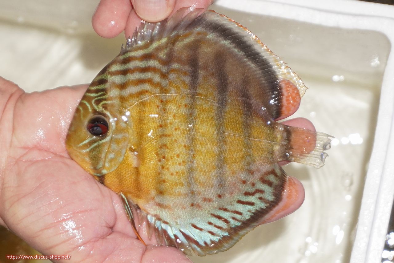 グリーンディスカスの中でも最もバリエーションが豊富でラージスポットタイプ、スポットラインタイプをはじめ、ロイヤルラインタイプなどの極上個体。またベースカラーの黄色、ホリゾンタルラインの青み、スポットの赤と最もカラフルな種となります。仕上がれば改良品種顔負けのど派手なパターンを持つ魅力的な産地の個体となります。