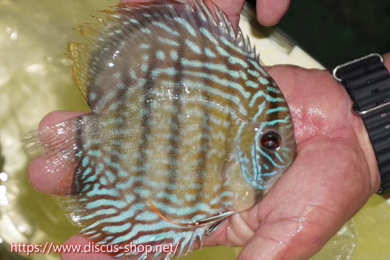 美しいラウンドフォルム、17センチを優に超える体躯でブルーディスカスの常識を覆した産地。下流域にはラインパターン、ソリッドが混生し、上流域には目を見張る様な青を発色するヘッケルが生息する。