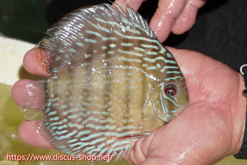 美しいラウンドフォルム、17センチを優に超える体躯でブルーディスカスの常識を覆した産地。下流域にはラインパターン、ソリッドが混生し、上流域には目を見張る様な青を発色するヘッケルが生息する。