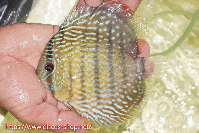 5年ぶり入荷の新産地個体。ワイルドディスカスの代名詞でもある美しいイエローベースカラー、王道ストレートラインパターンを持つロイヤルブルーの聖地。レッド発色を強く持ち非常に美しい仕上がりとなります。