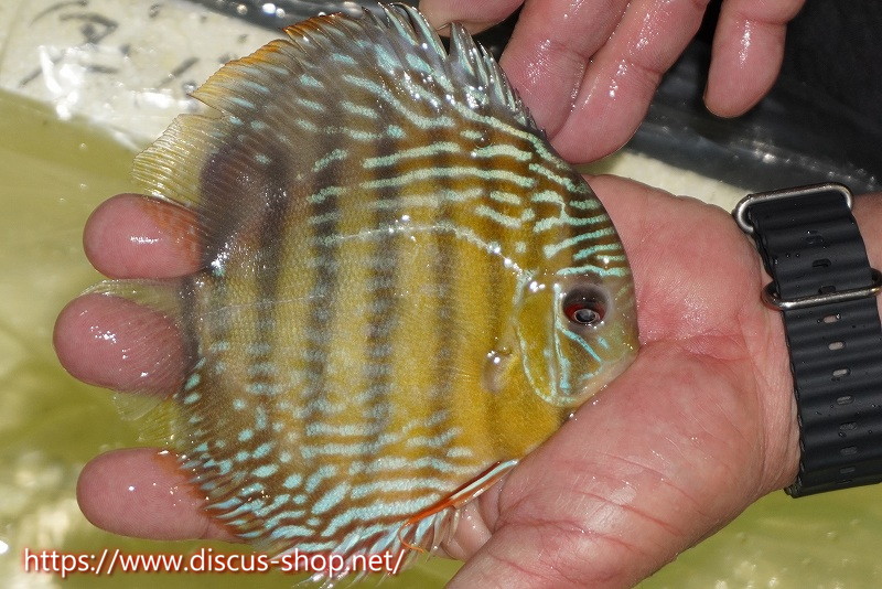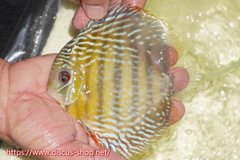 5年ぶり入荷の新産地個体。ワイルドディスカスの代名詞でもある美しいイエローベースカラー、王道ストレートラインパターンを持つロイヤルブルーの聖地。レッド発色を強く持ち非常に美しい仕上がりとなります。