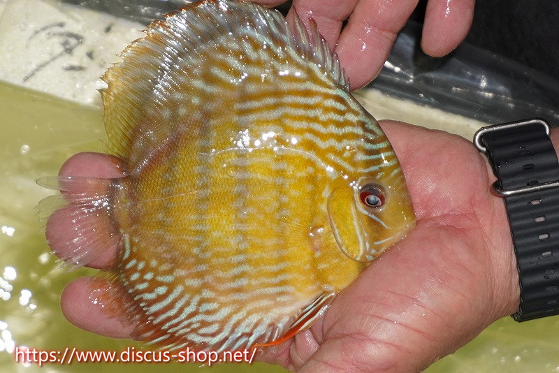 5年ぶり入荷の新産地個体。ワイルドディスカスの代名詞でもある美しいイエローベースカラー、王道ストレートラインパターンを持つロイヤルブルーの聖地。レッド発色を強く持ち非常に美しい仕上がりとなります。