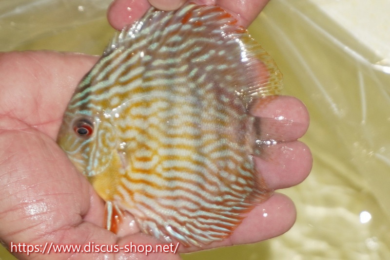 5年ぶり入荷の新産地個体。ワイルドディスカスの代名詞でもある美しいイエローベースカラー、王道ストレートラインパターンを持つロイヤルブルーの聖地。レッド発色を強く持ち非常に美しい仕上がりとなります。