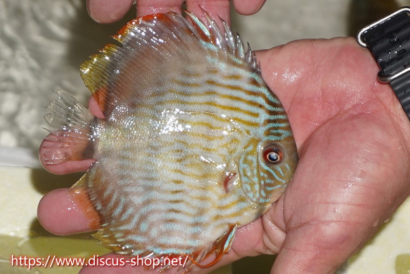 5年ぶり入荷の新産地個体。ワイルドディスカスの代名詞でもある美しいイエローベースカラー、王道ストレートラインパターンを持つロイヤルブルーの聖地。レッド発色を強く持ち非常に美しい仕上がりとなります。