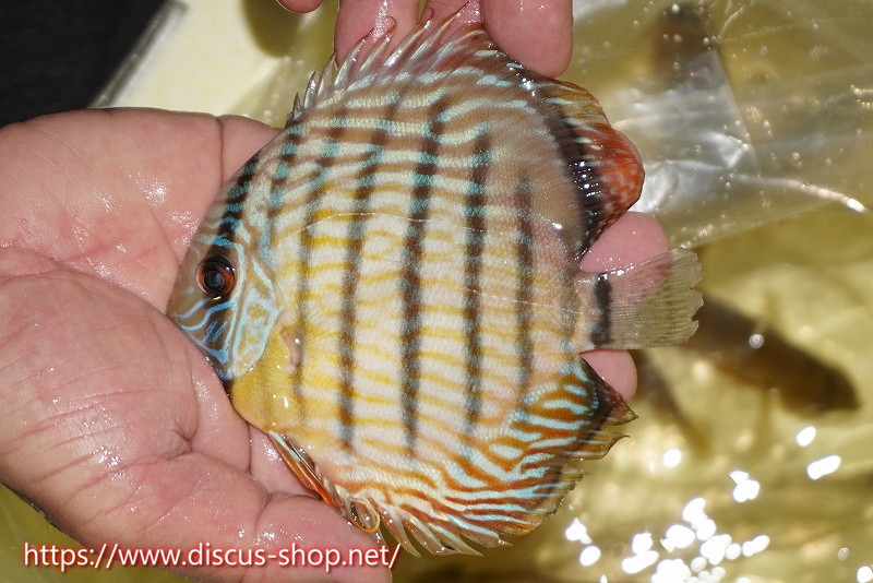 イエローベースが美しいソリッド、ソリッドセンターバー、ロイヤルブルーが混生するウラリアチャンネルに絡む有名産地。 きめ細かな鱗からの上品な発色、ロイヤル個体の明瞭なラインパターン、千差万別の個体差はワイルドディスカスの魅力を存分に持ち合わせた個体といえます。