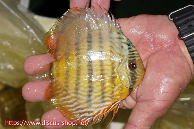 イエローベースが美しいソリッド、ソリッドセンターバー、ロイヤルブルーが混生するウラリアチャンネルに絡む有名産地。 きめ細かな鱗からの上品な発色、ロイヤル個体の明瞭なラインパターン、千差万別の個体差はワイルドディスカスの魅力を存分に持ち合わせた個体といえます。