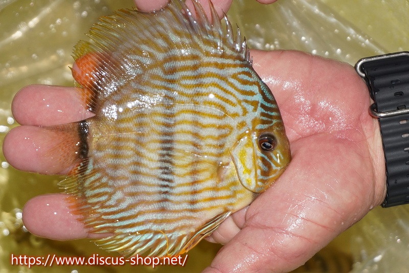イエローベースが美しいソリッド、ソリッドセンターバー、ロイヤルブルーが混生するウラリアチャンネルに絡む有名産地。 きめ細かな鱗からの上品な発色、ロイヤル個体の明瞭なラインパターン、千差万別の個体差はワイルドディスカスの魅力を存分に持ち合わせた個体といえます。