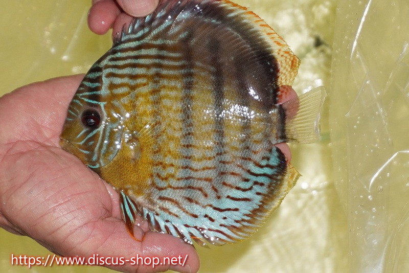 グリーンディスカスの中でも最もバリエーションが豊富でラージスポットタイプ、スポットラインタイプをはじめ、ロイヤルラインタイプなどの極上個体。またベースカラーの黄色、ホリゾンタルラインの青み、スポットの赤と最もカラフルな種となります。仕上がれば改良品種顔負けのど派手なパターンを持つ魅力的な産地の個体となります。