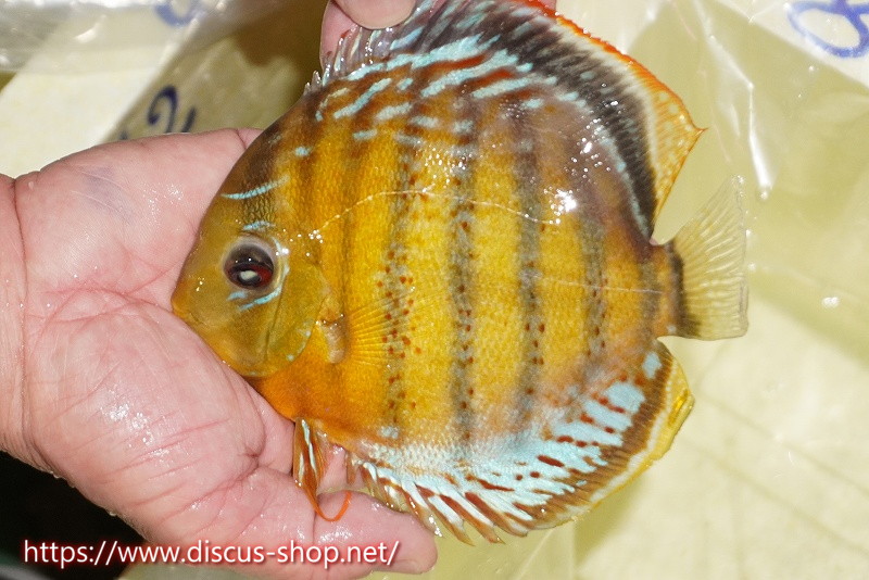 グリーンディスカスの中でも最もバリエーションが豊富でラージスポットタイプ、スポットラインタイプをはじめ、ロイヤルラインタイプなどの極上個体。またベースカラーの黄色、ホリゾンタルラインの青み、スポットの赤と最もカラフルな種となります。仕上がれば改良品種顔負けのど派手なパターンを持つ魅力的な産地の個体となります。