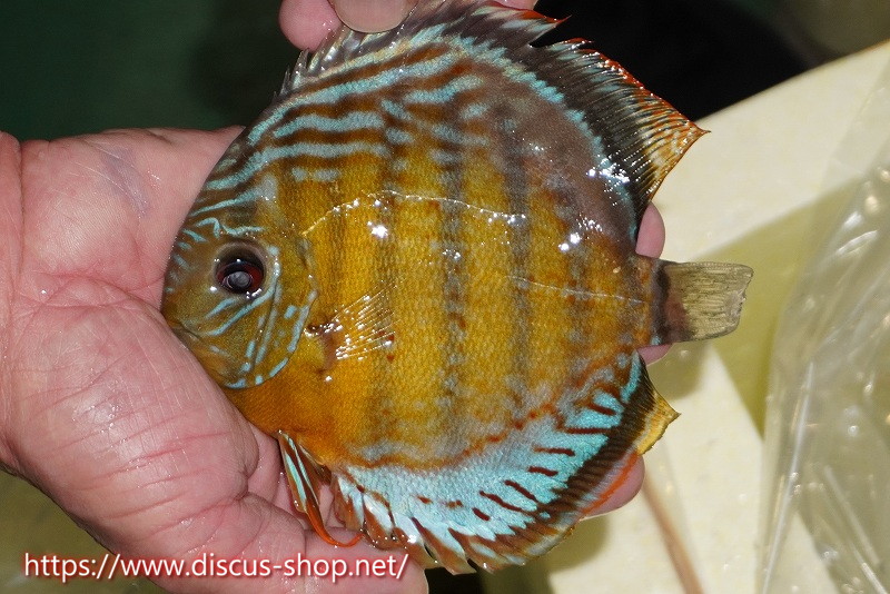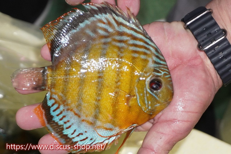 グリーンディスカスの中でも最もバリエーションが豊富でラージスポットタイプ、スポットラインタイプをはじめ、ロイヤルラインタイプなどの極上個体。またベースカラーの黄色、ホリゾンタルラインの青み、スポットの赤と最もカラフルな種となります。仕上がれば改良品種顔負けのど派手なパターンを持つ魅力的な産地の個体となります。